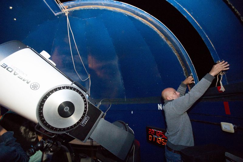 It features a 3.5-meter diameter semi-spherical dome with motorized movement; the observation eyelid opening is lateral and manually operated.